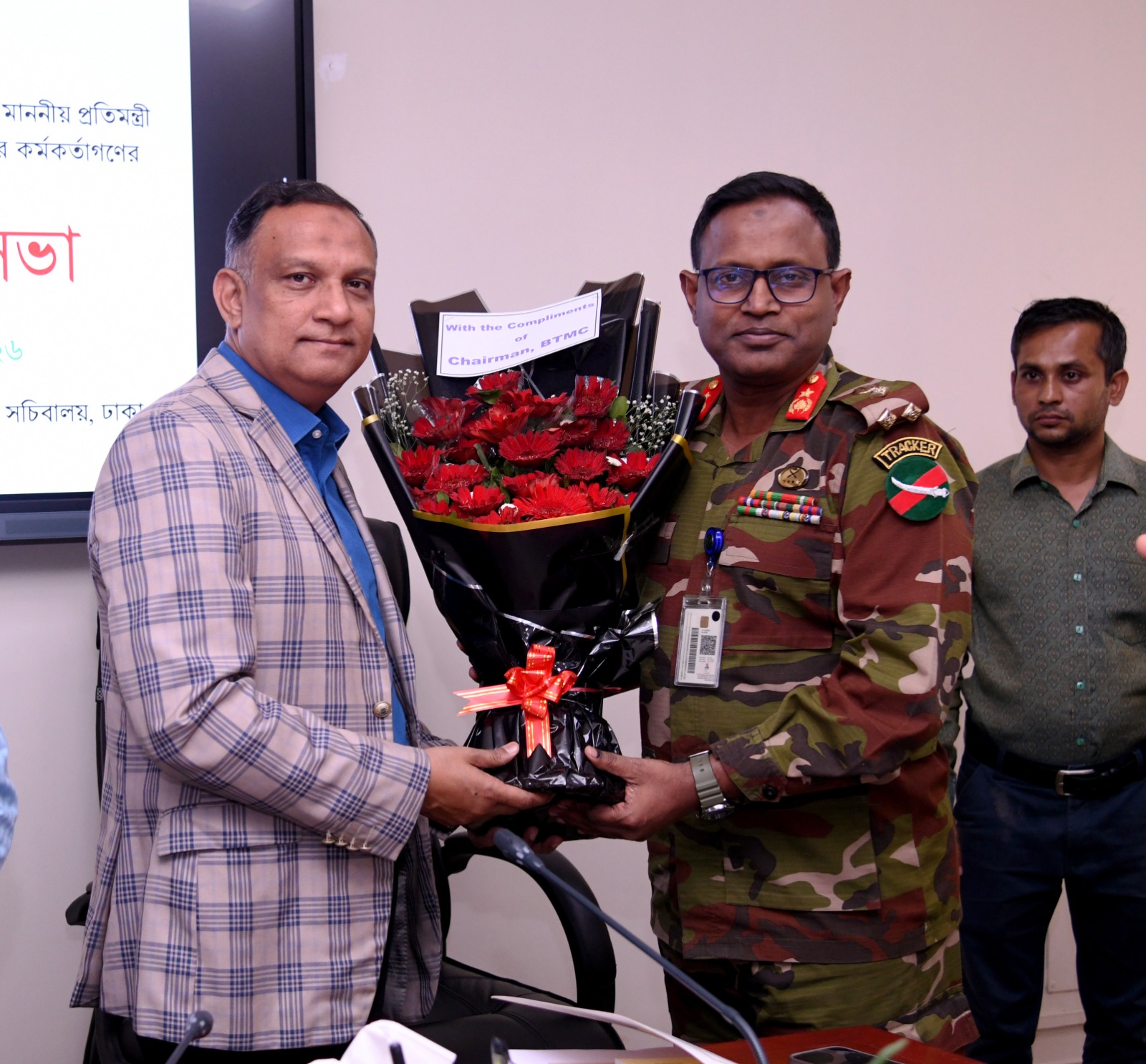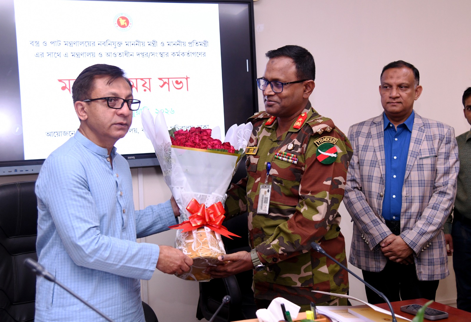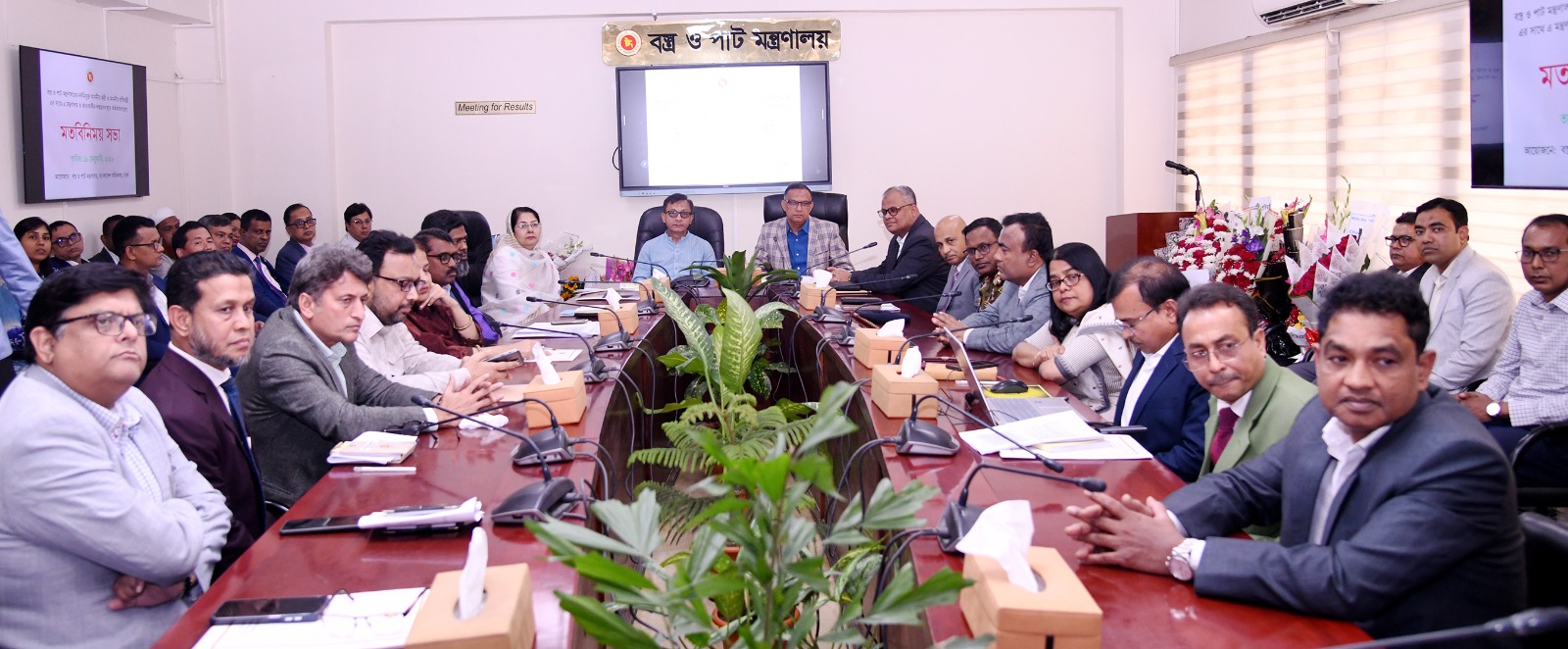 বস্ত্র ও পাট মন্ত্রণালয়ের নবনিযুক্ত মাননীয় মন্ত্রী ও প্রতিমন্ত্রী মহোদয়ের সাথে সভার স্থিরচিত্র।