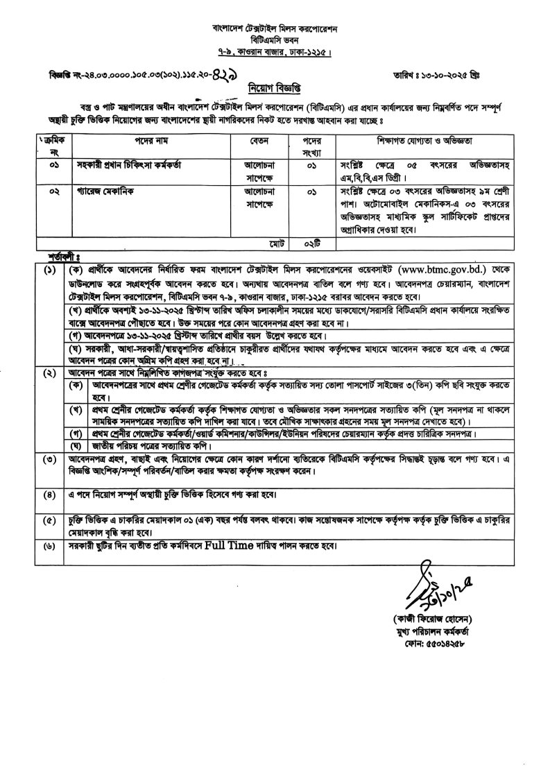 নিয়োগ বিজ্ঞপ্তি